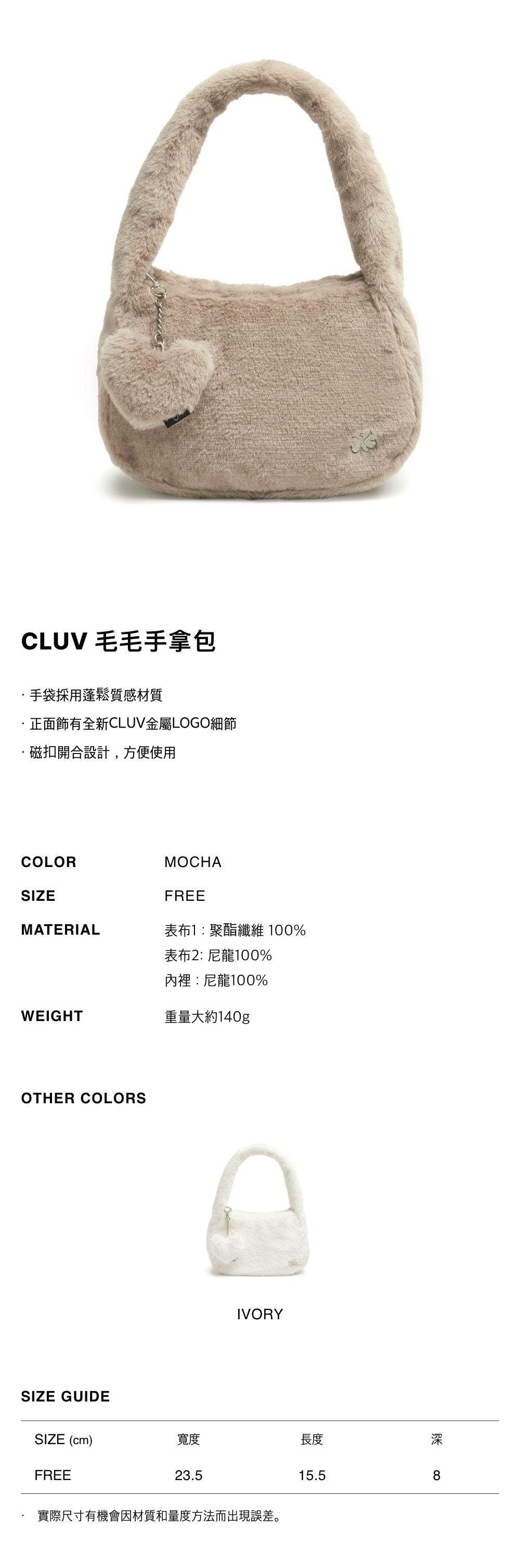 - 正面飾有全新CLUV金屬LOGO細節