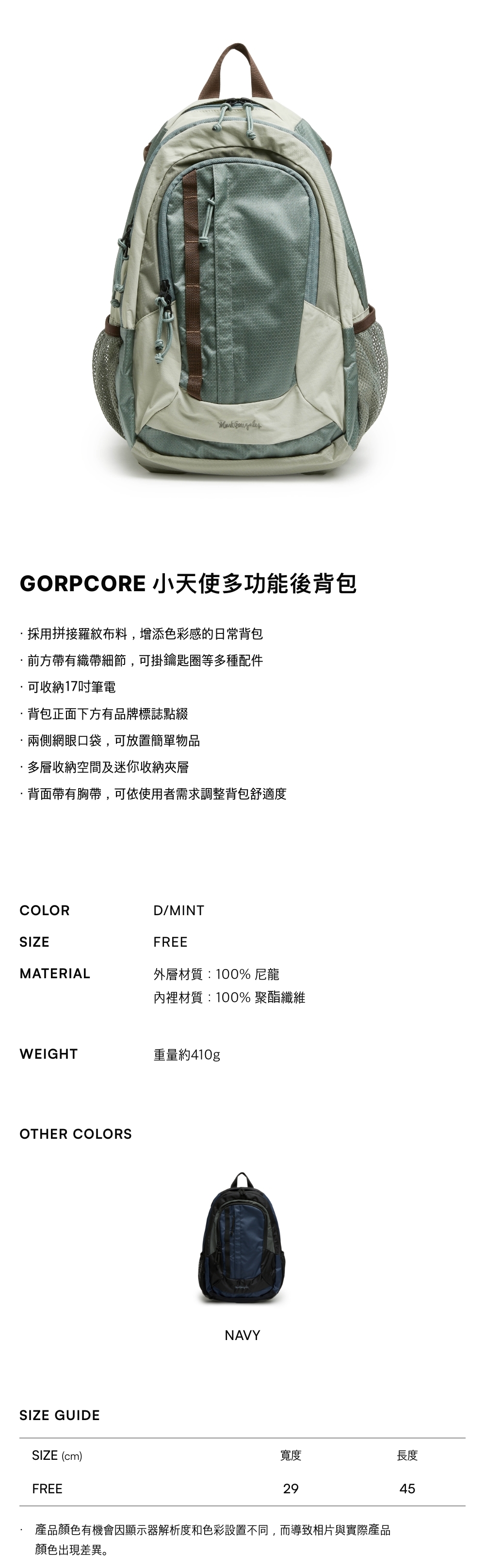 - 背包正面下方有品牌標誌點綴