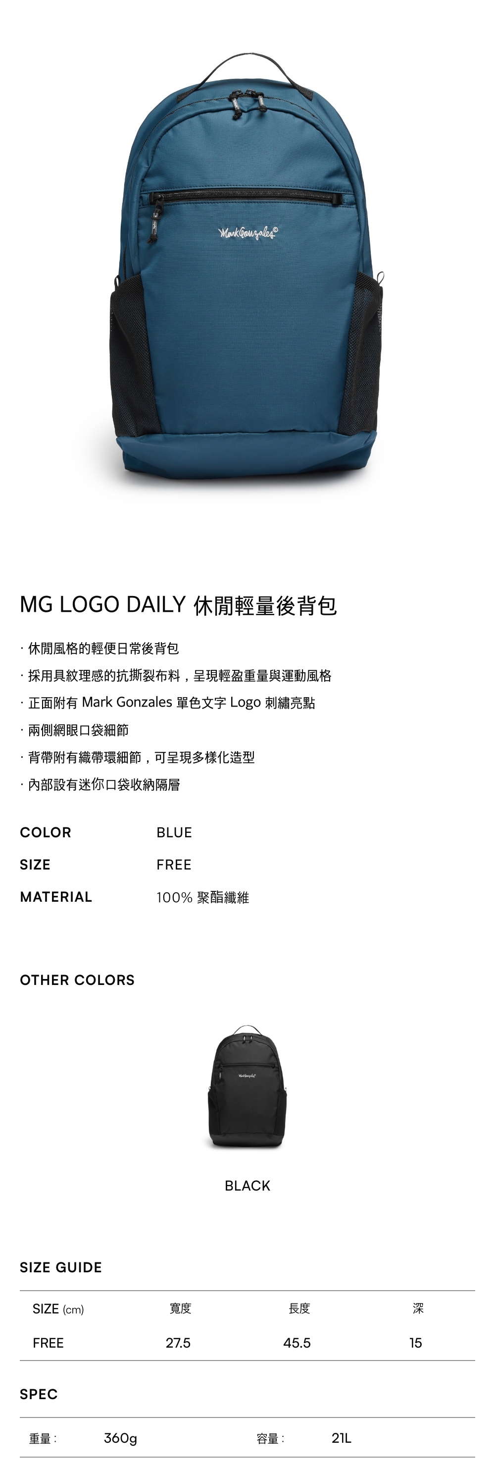 - 休閒風格的輕便日常後背包