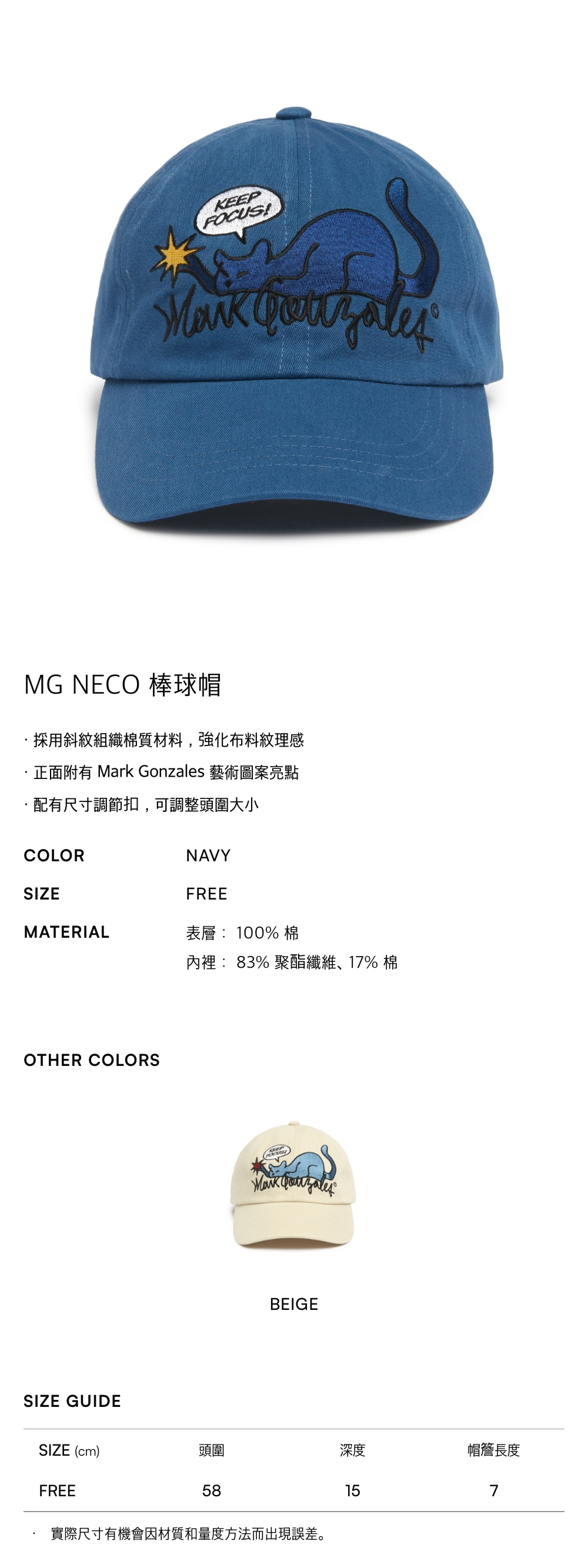 - 配有尺寸調節扣,可調整頭圍大小