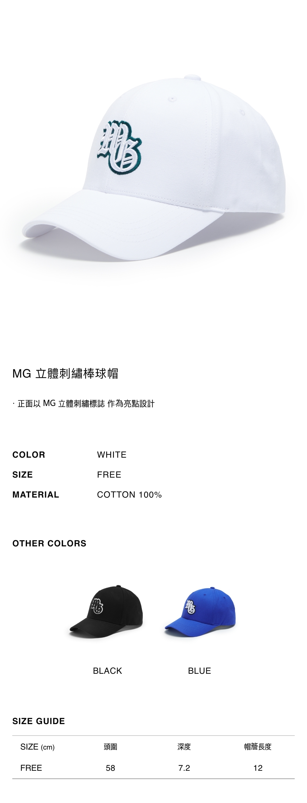 - 正面以 MG 立體刺繡標誌 作為亮點設計