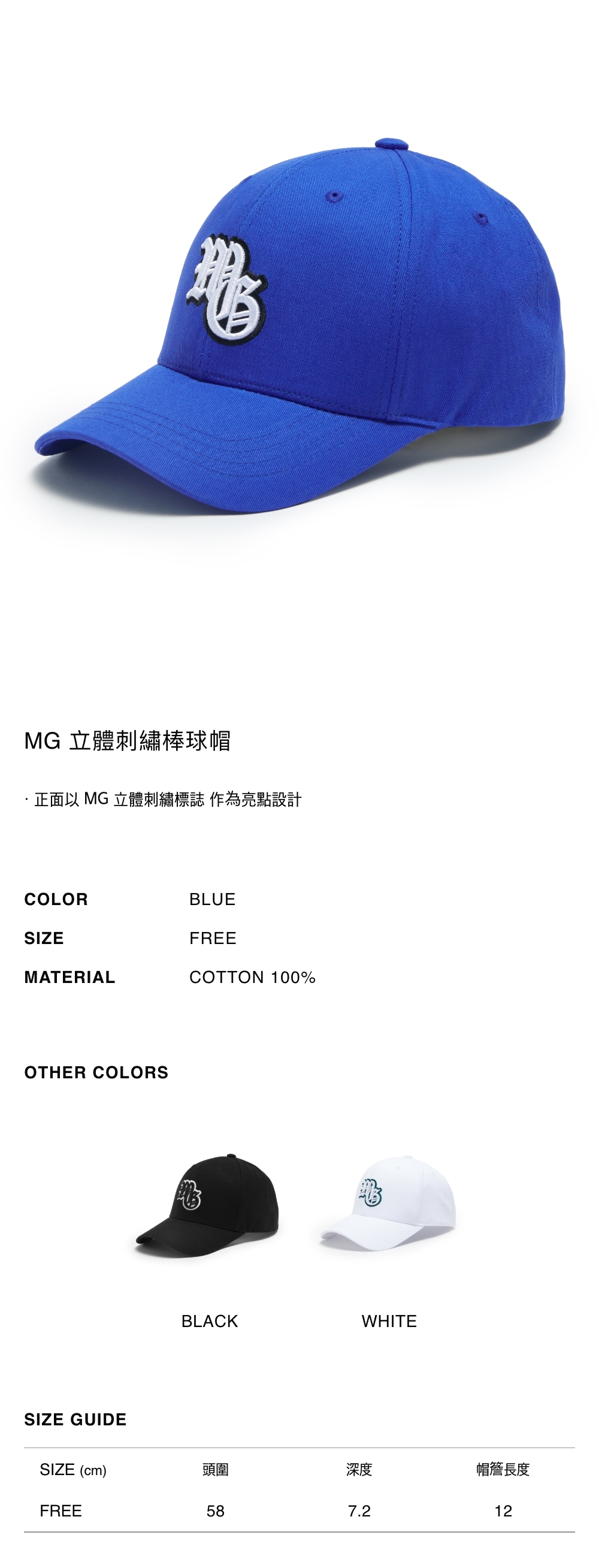 - 正面以 MG 立體刺繡標誌 作為亮點設計