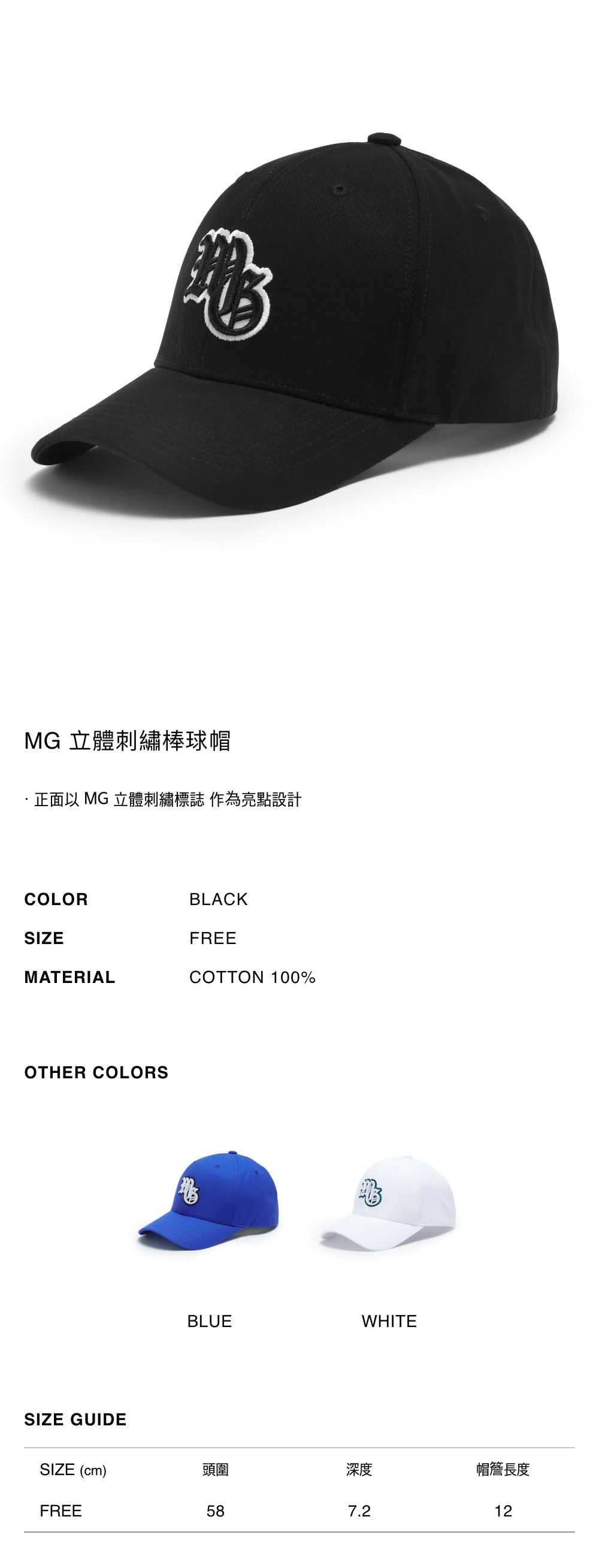 - 正面以 MG 立體刺繡標誌 作為亮點設計