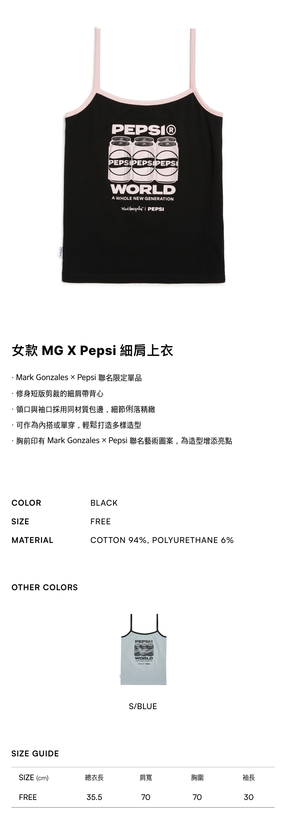 【MG X Pepsi】女款 細肩上衣 - 黑色