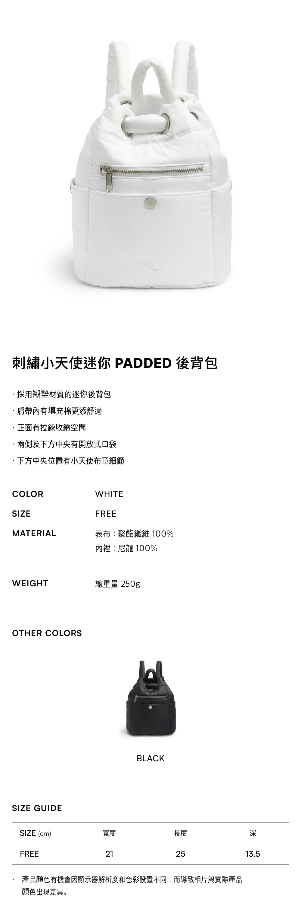 - 採用襯墊材質的迷你後背包