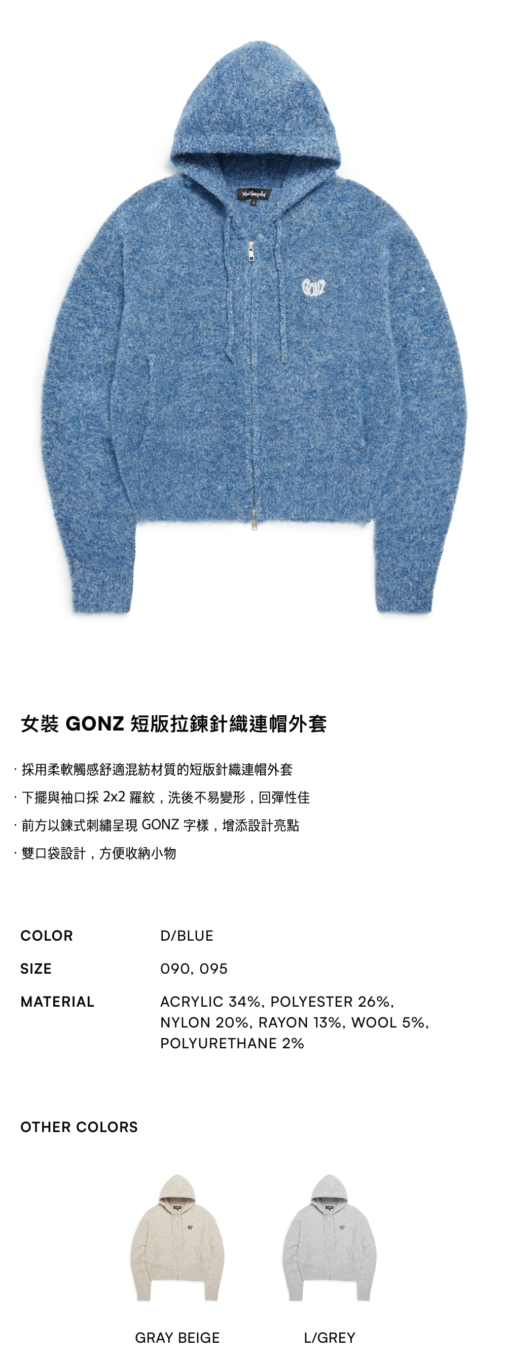 - 前方以鍊式刺繡呈現 GONZ 字樣,增添設計亮點