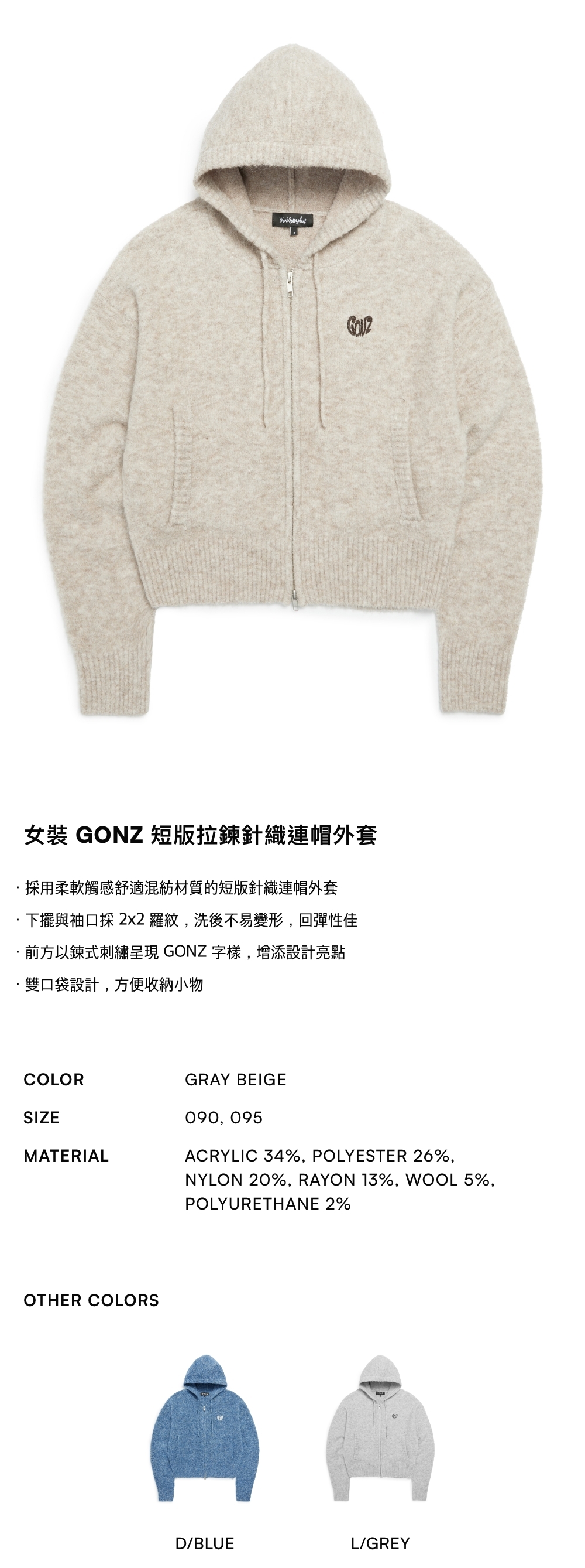 - 前方以鍊式刺繡呈現 GONZ 字樣,增添設計亮點