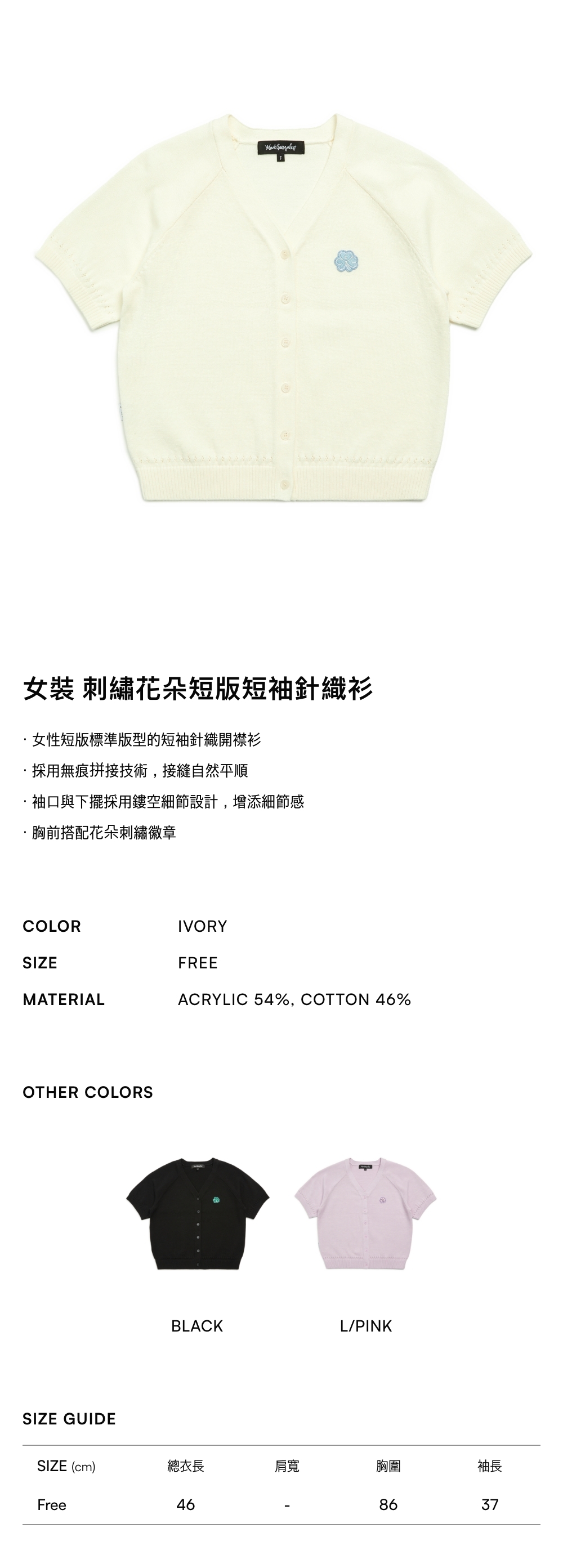 -女性短版標準版型的短袖針織開襟衫