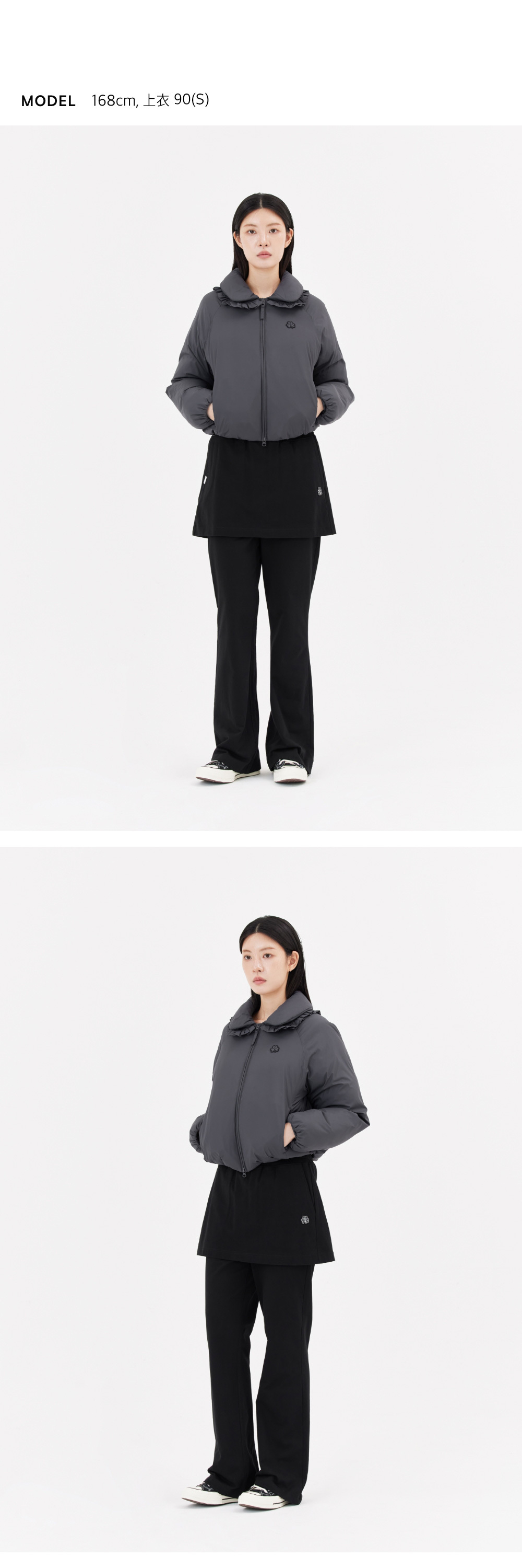 - 下擺內側設有抽繩與束扣,可自由調整版型並加強保暖