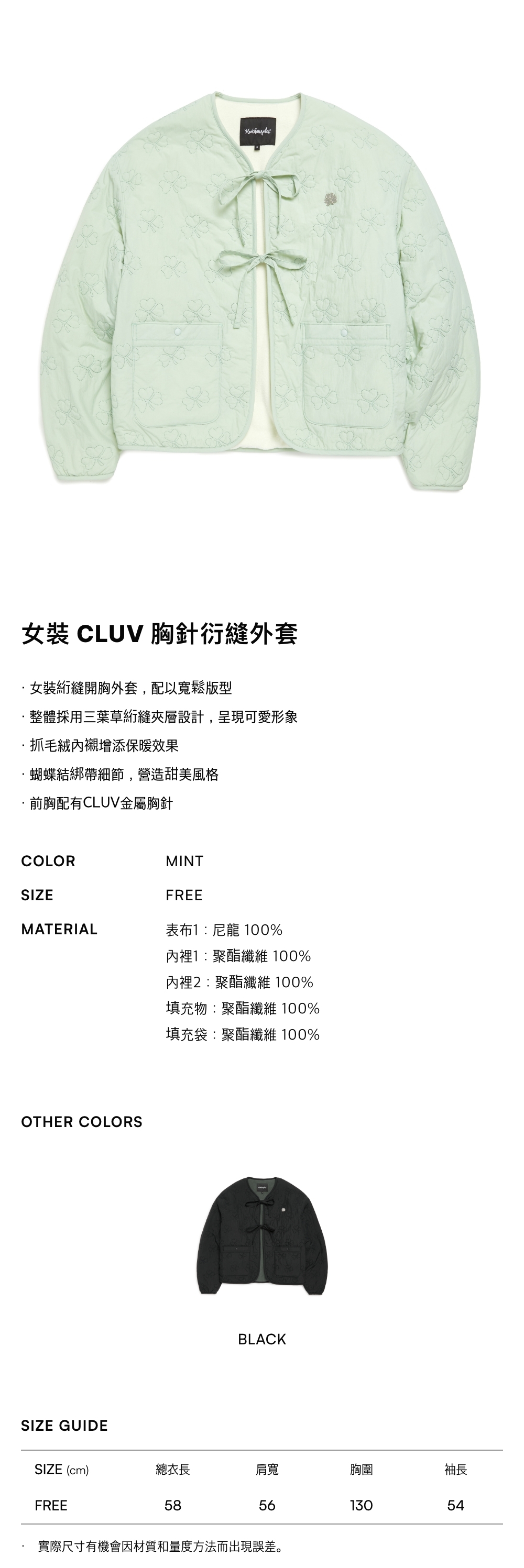 - 前胸配有CLUV金屬胸針