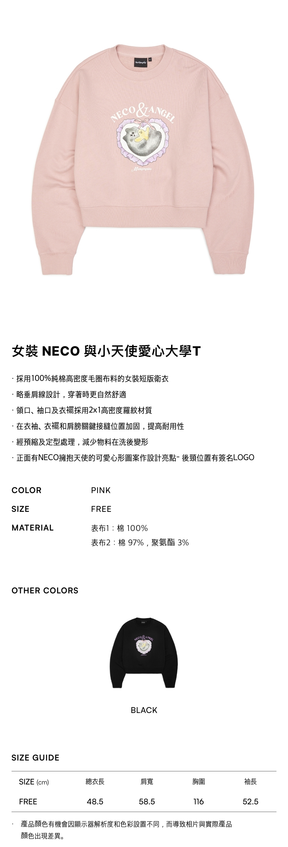 - 正面有NECO擁抱天使的可愛心形圖案作設計亮點- 後頸位置有簽名LOGO
