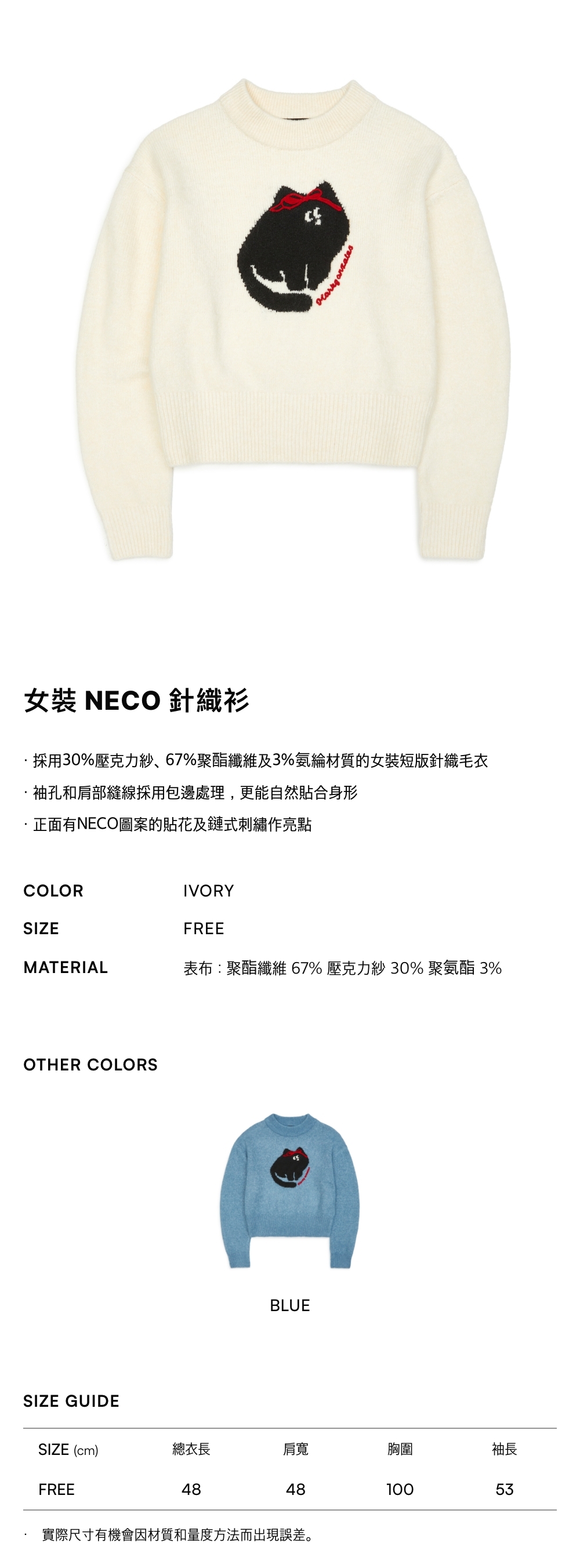 - 正面有NECO圖案的貼花及鏈式刺繡作亮點