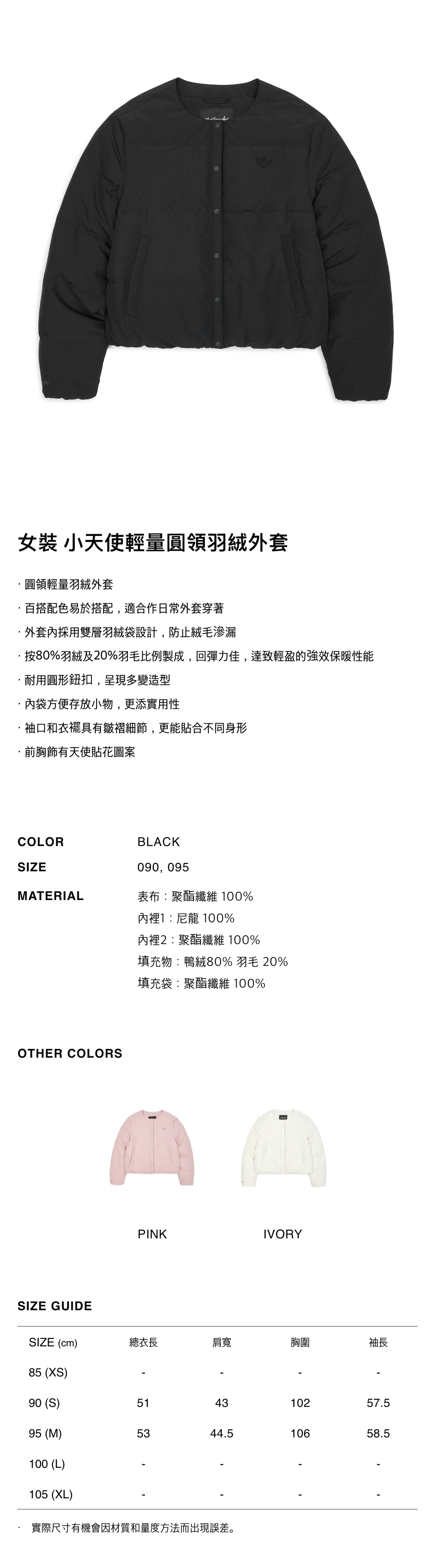 - 圓領輕量羽絨外套