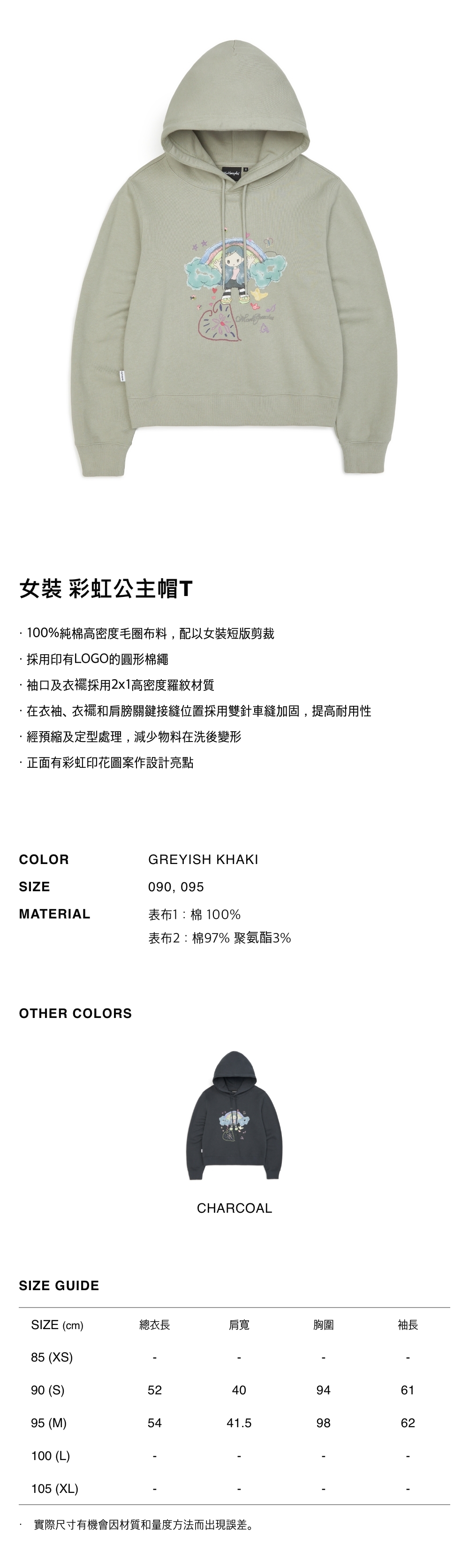 - 100%純棉高密度毛圈布料,配以女裝短版剪裁