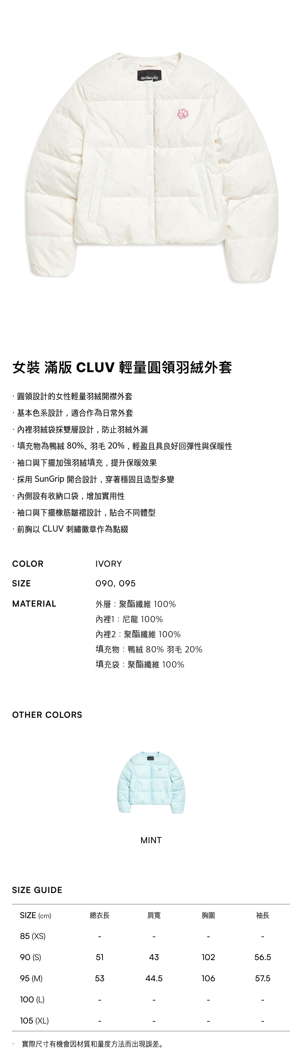 - 前胸以 CLUV 刺繡徽章作為點綴