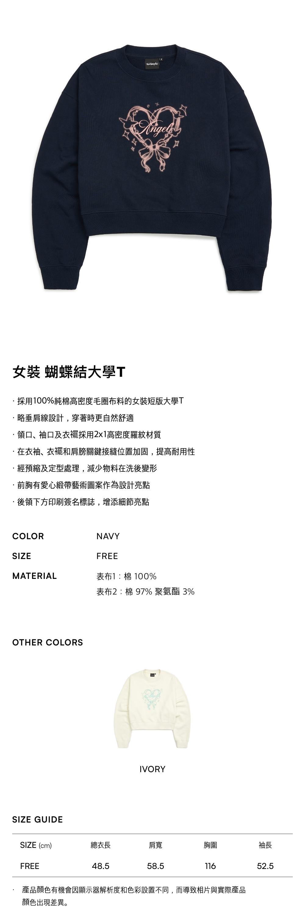 - 採用100%純棉高密度毛圈布料的女裝短版大學T