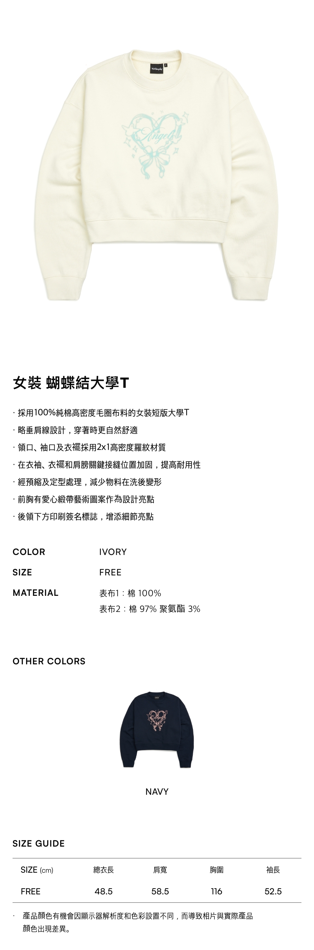 - 採用100%純棉高密度毛圈布料的女裝短版大學T