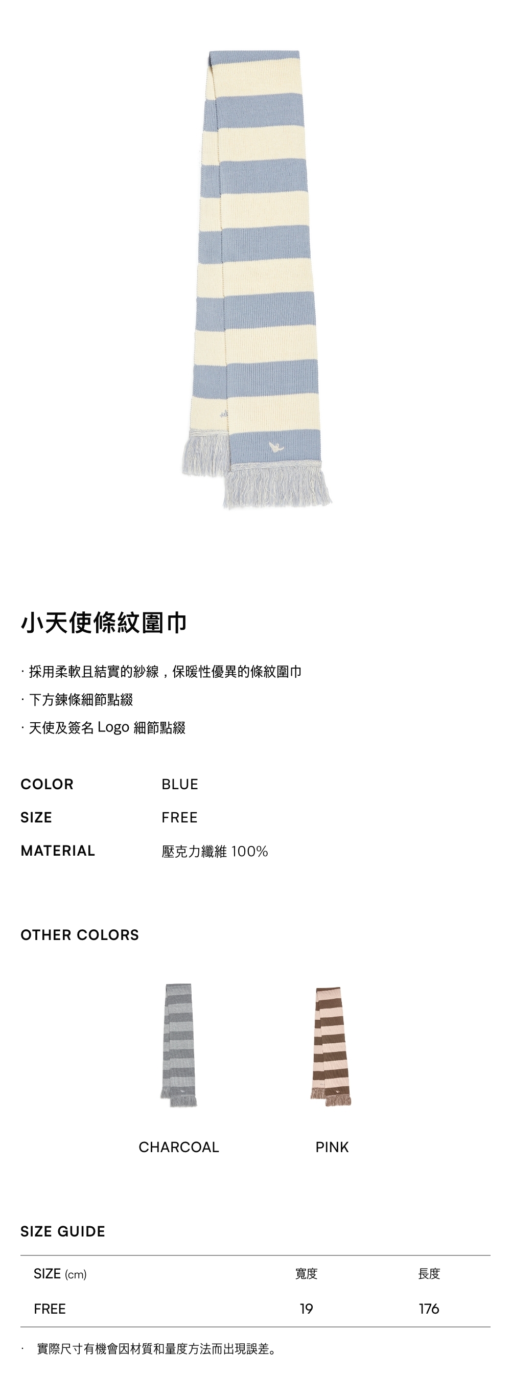 - 採用柔軟且結實的紗線,保暖性優異的條紋圍巾