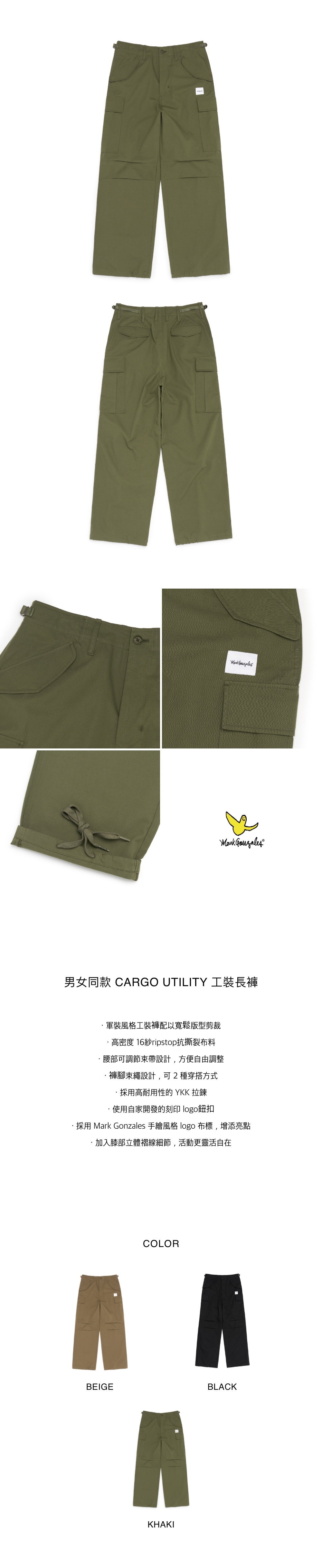 - 軍裝風格工裝褲配以寬鬆版型剪裁