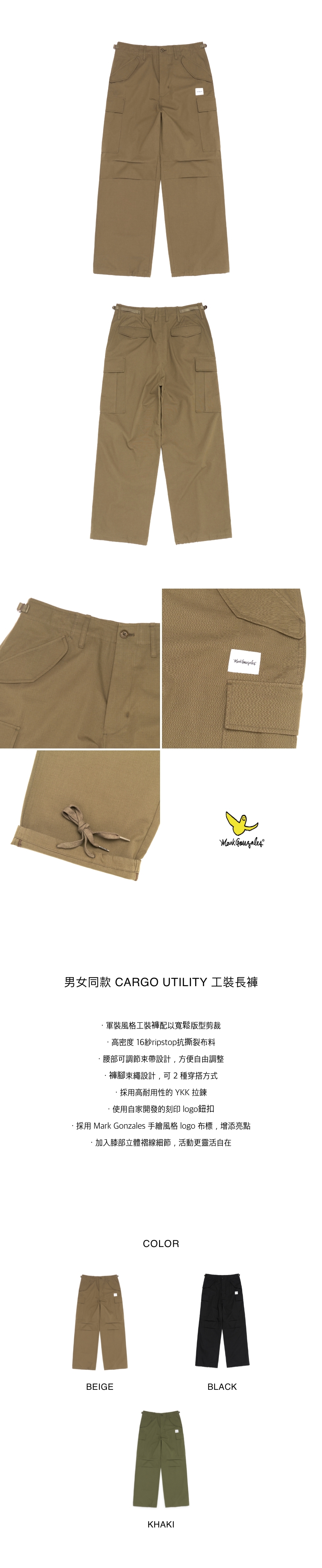 - 軍裝風格工裝褲配以寬鬆版型剪裁