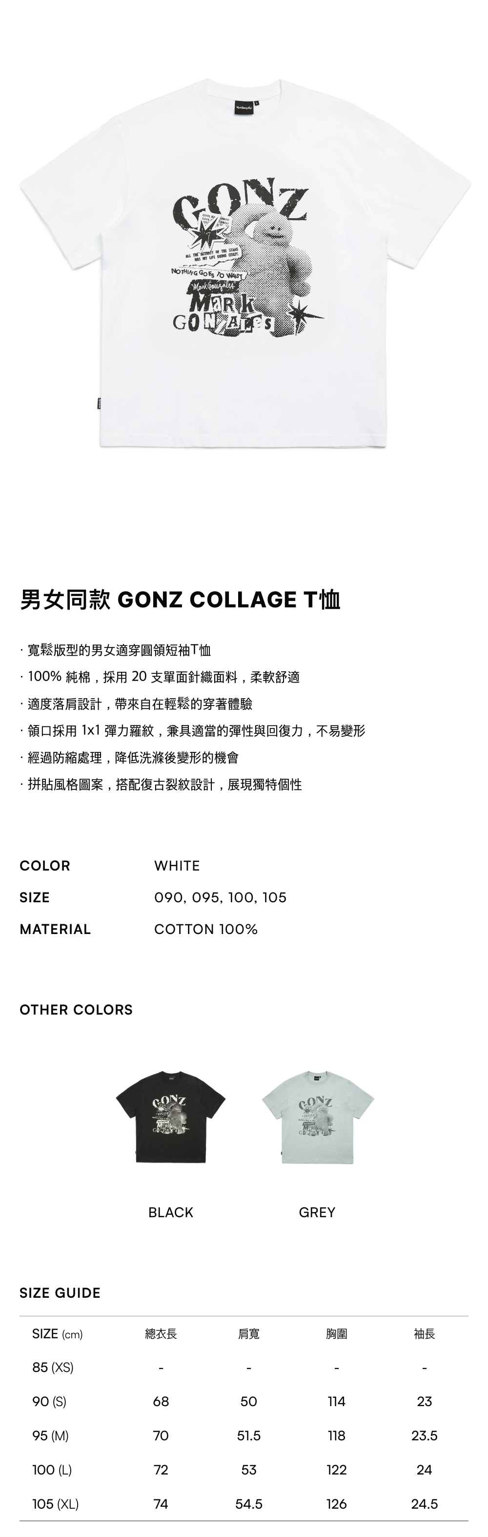 - 寬鬆版型的男女適穿圓領短袖T恤