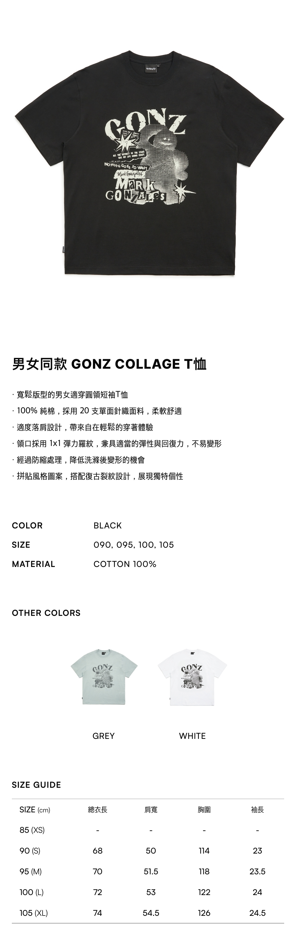 - 寬鬆版型的男女適穿圓領短袖T恤