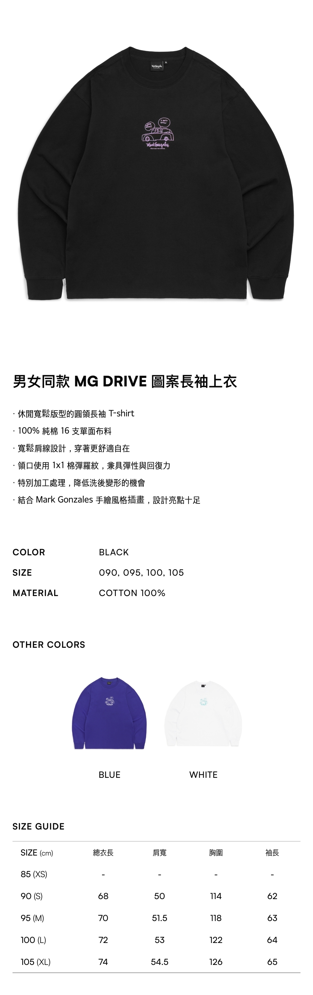 - 休閒寬鬆版型的圓領長袖 T- shirt