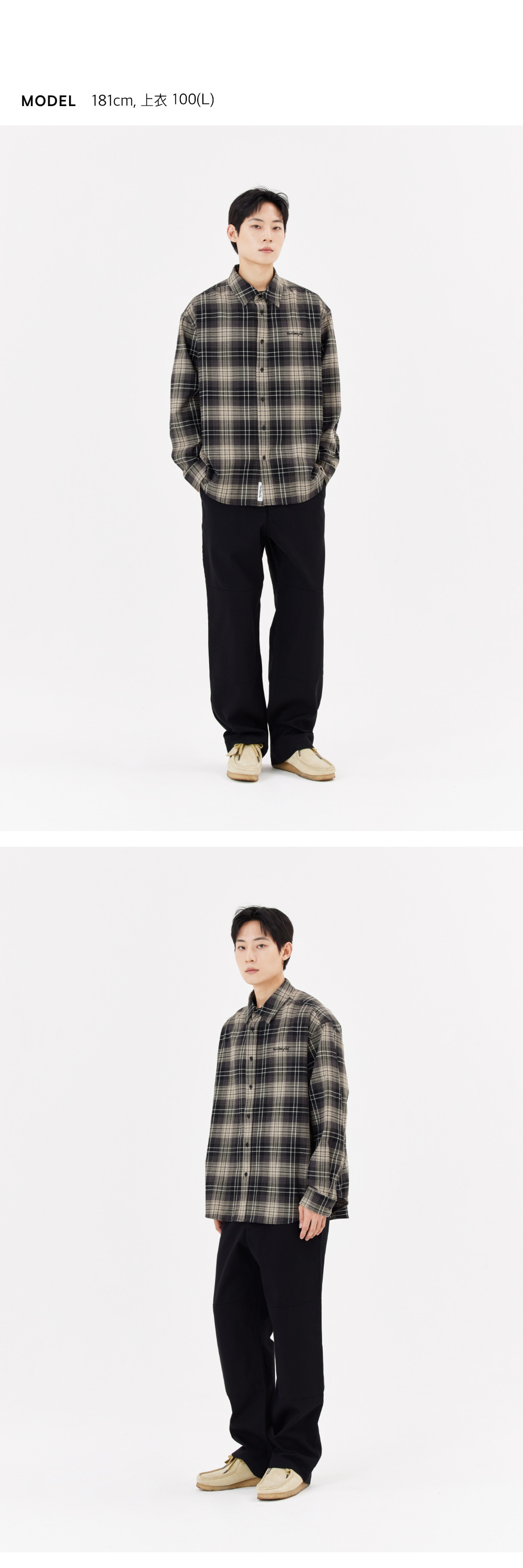 - 格紋法蘭絨襯衫,配以寬鬆版型