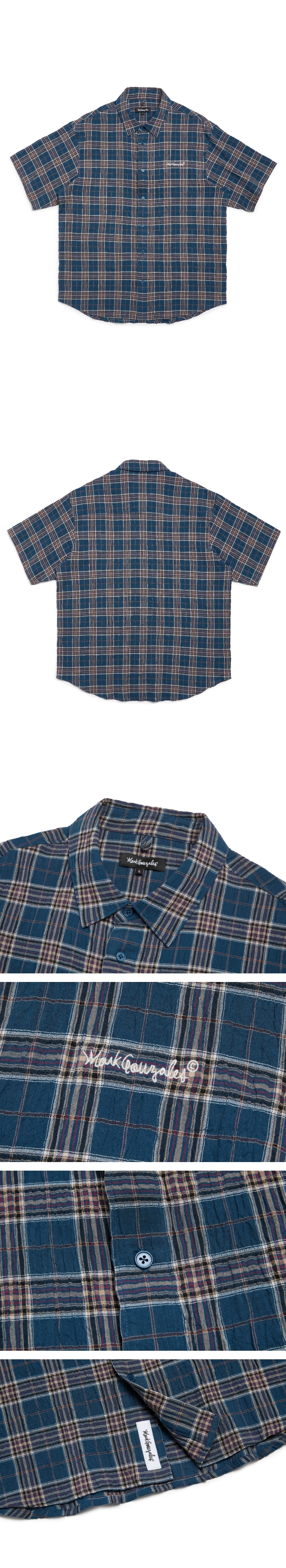 - 寬鬆休閒版型的男女皆宜格紋短袖襯衫