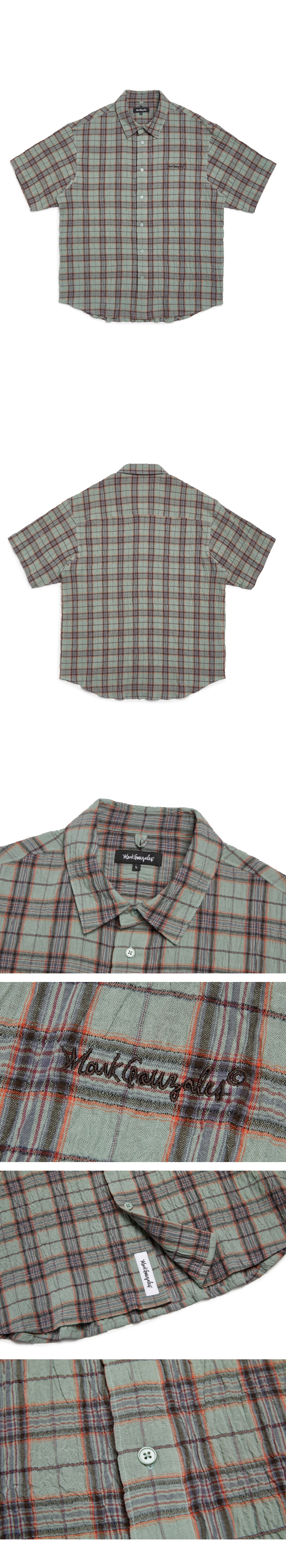 - 寬鬆休閒版型的男女皆宜格紋短袖襯衫