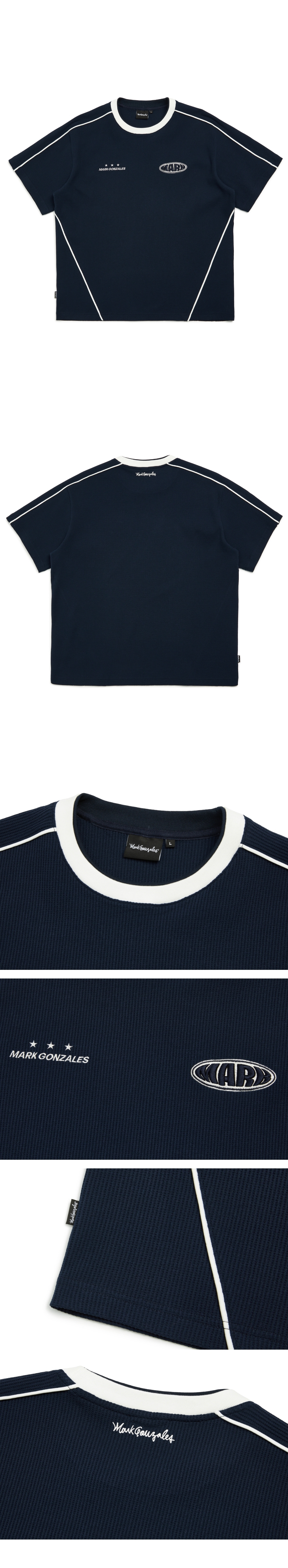 -男女適宜的華夫格球衣風格圓領短袖T恤,配以寬鬆剪裁