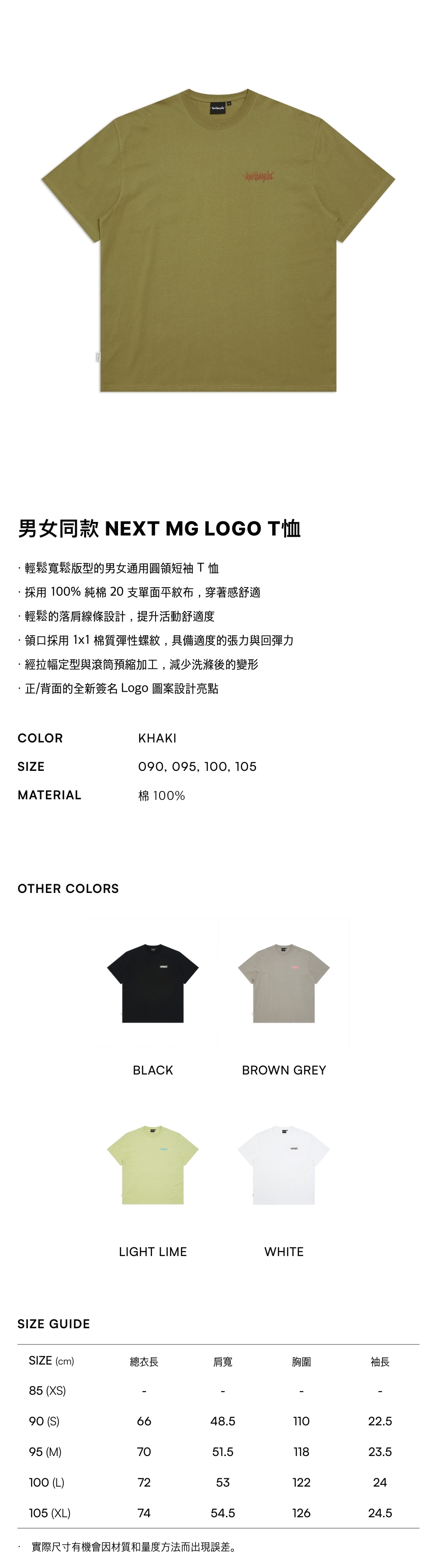 - 採用 100% 純棉 20 支單面平紋布,穿著感舒適