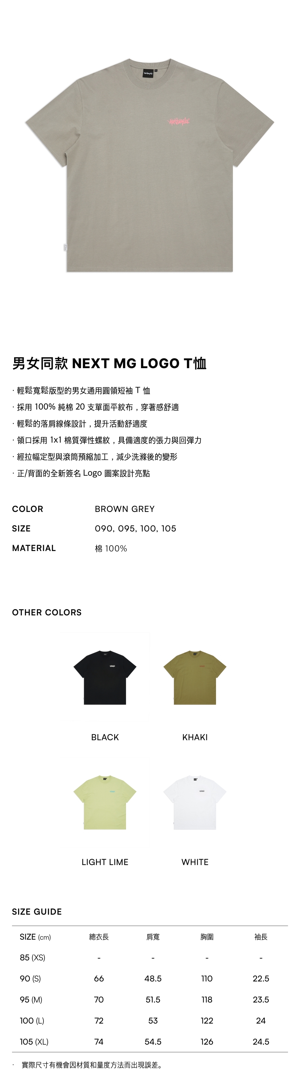 - 採用 100% 純棉 20 支單面平紋布,穿著感舒適