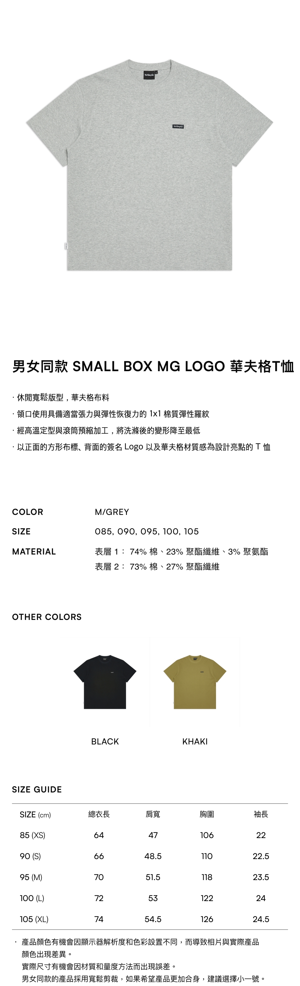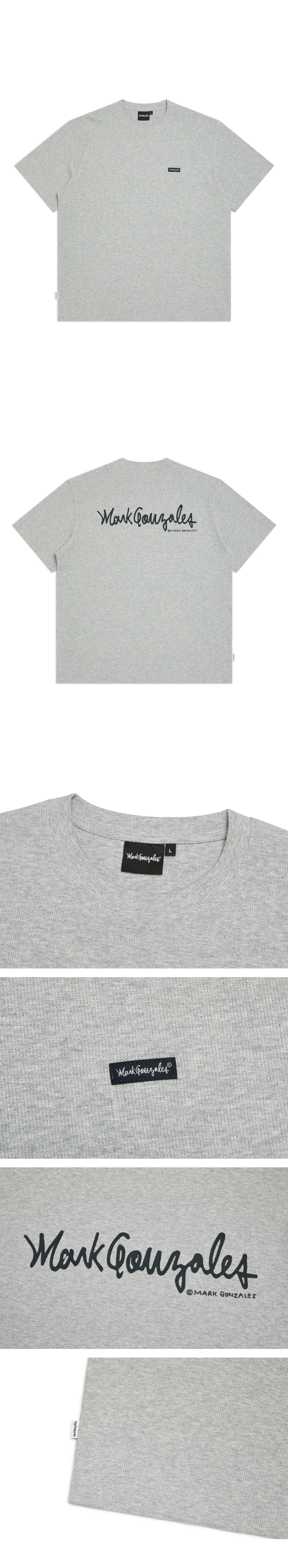 - 以正面的方形布標、背面的簽名 Logo 以及華夫格材質感為設計亮點的 T 恤