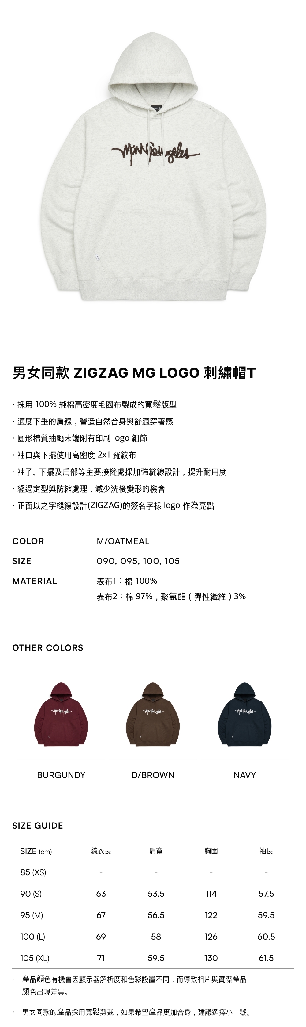 - 採用 100% 純棉高密度毛圈布製成的寬鬆版型