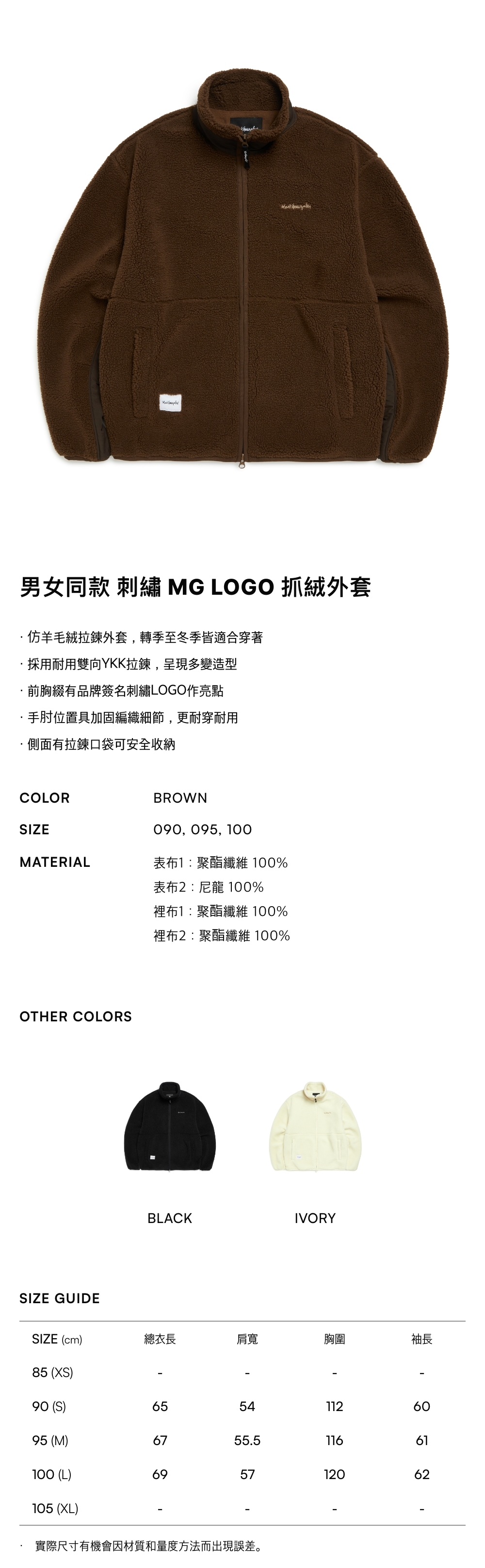 - 仿羊毛絨拉鍊外套,轉季至冬季皆適合穿著