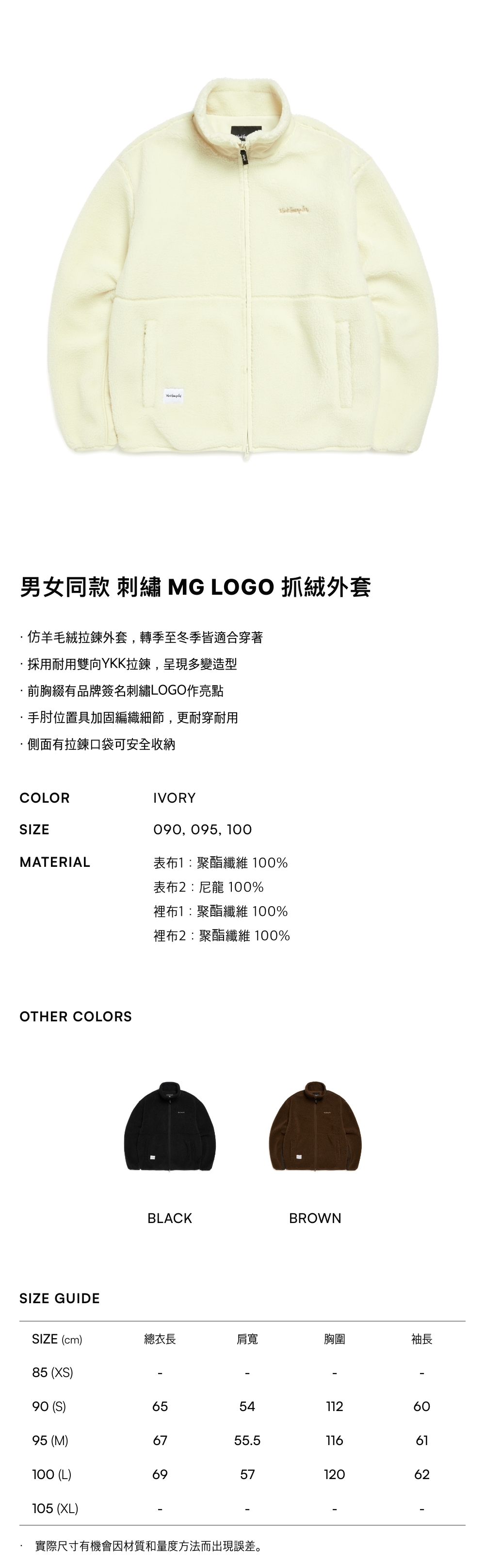 - 仿羊毛絨拉鍊外套,轉季至冬季皆適合穿著