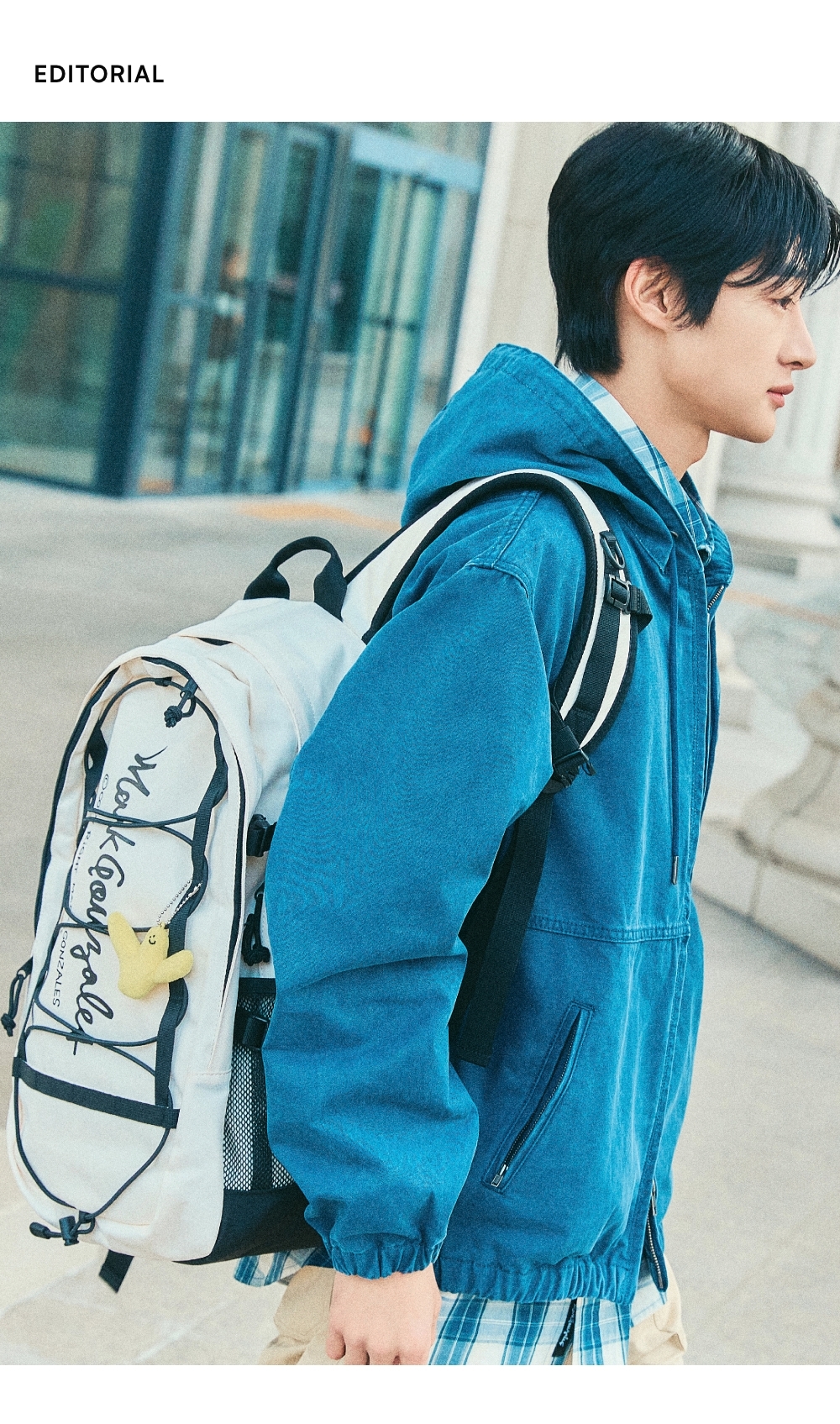 - 寬鬆剪裁的帆布材質