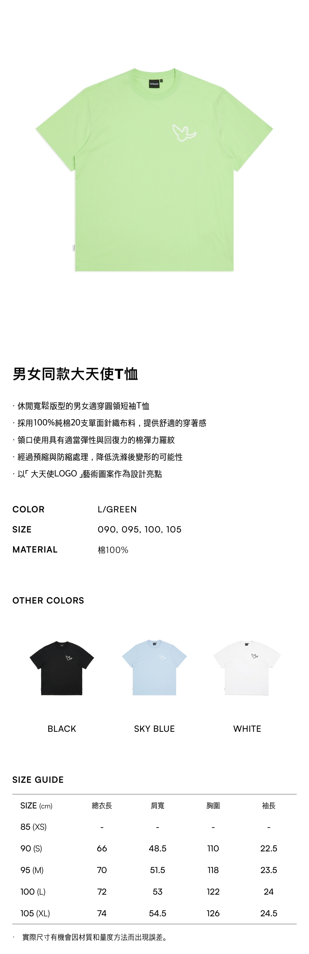-採用100%純棉20支單面針織布料,提供舒適的穿著感