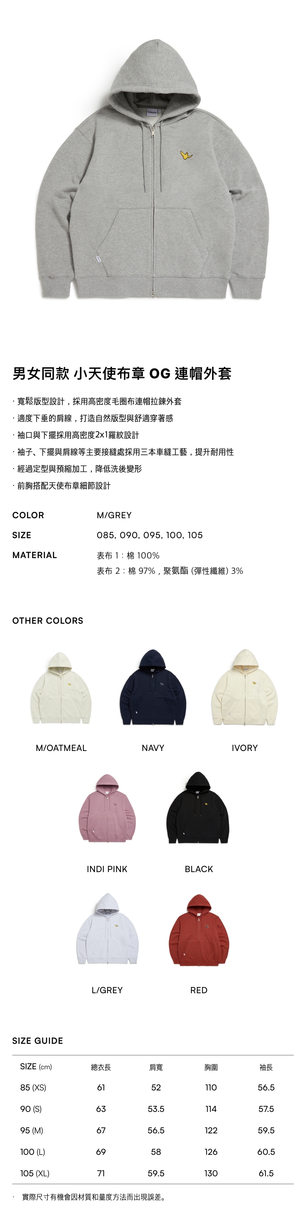 - 寬鬆版型設計,採用高密度毛圈布連帽拉鍊外套