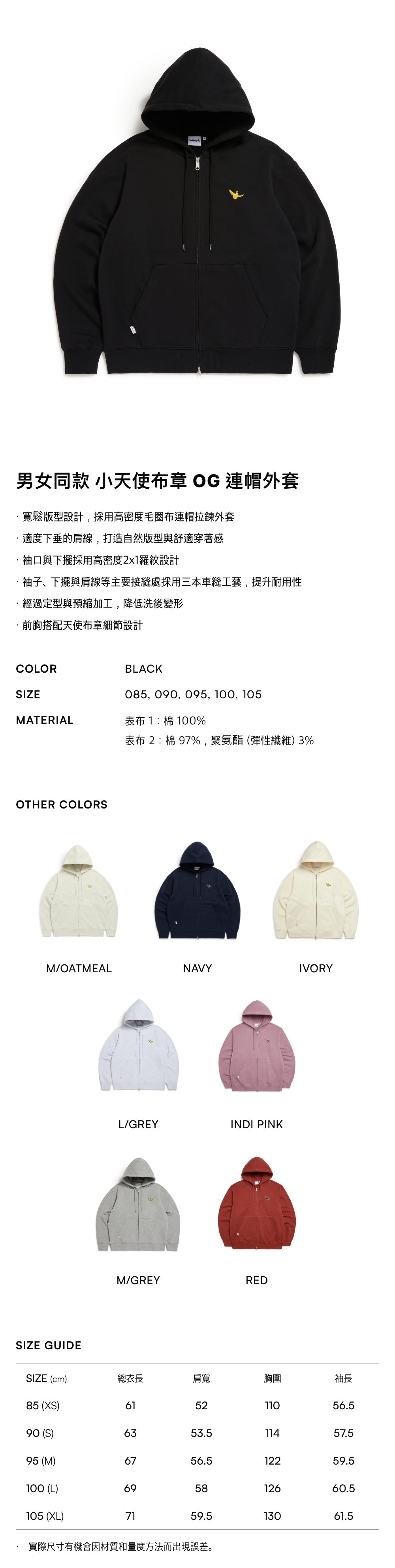 - 寬鬆版型設計,採用高密度毛圈布連帽拉鍊外套