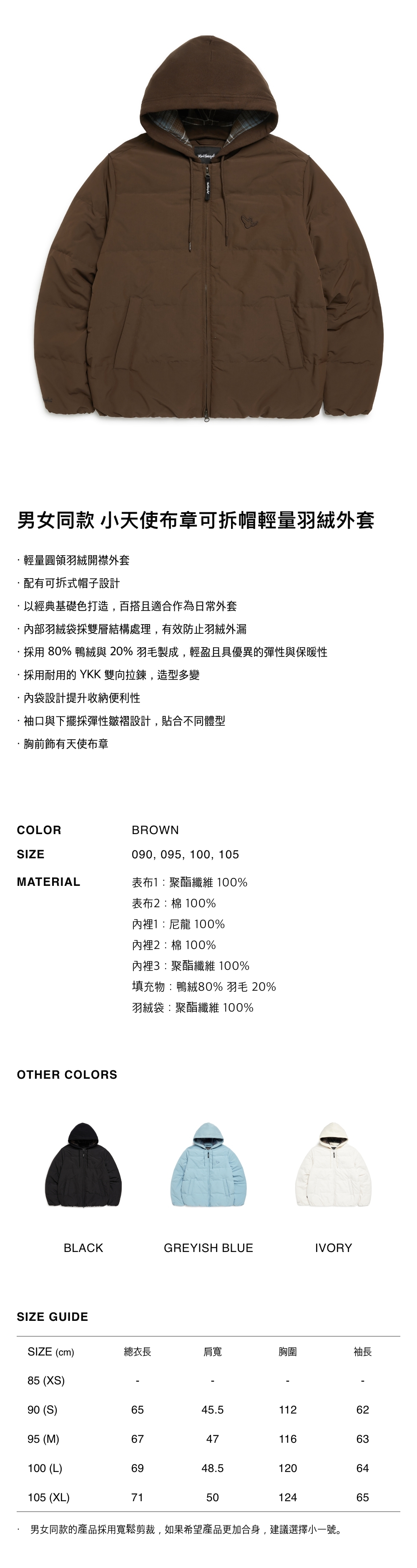 - 採用 80% 鴨絨與 20% 羽毛製成,輕盈且具優異的彈性與保暖性