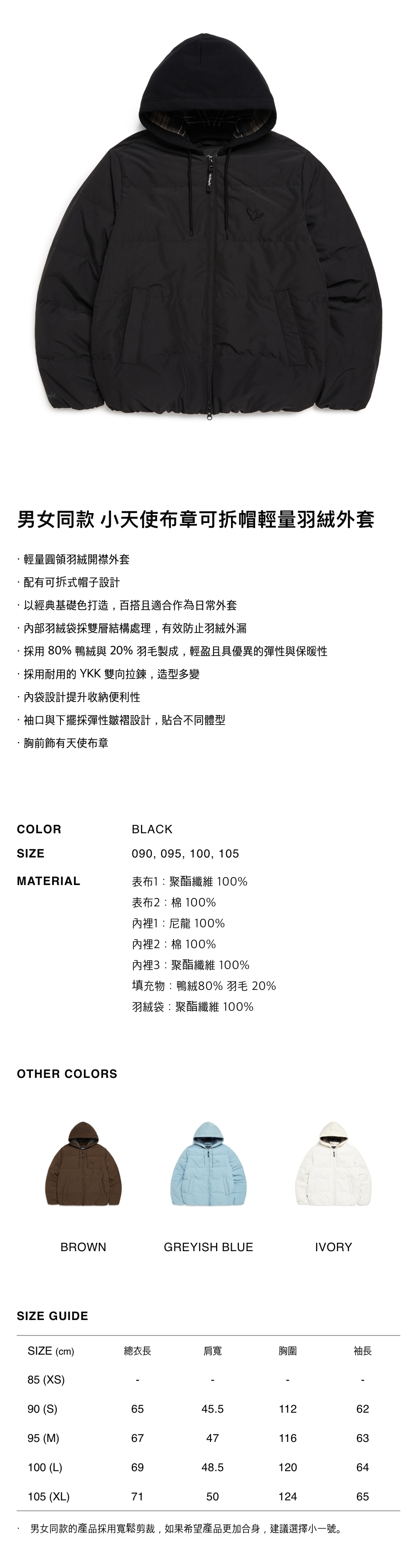 - 採用 80% 鴨絨與 20% 羽毛製成,輕盈且具優異的彈性與保暖性