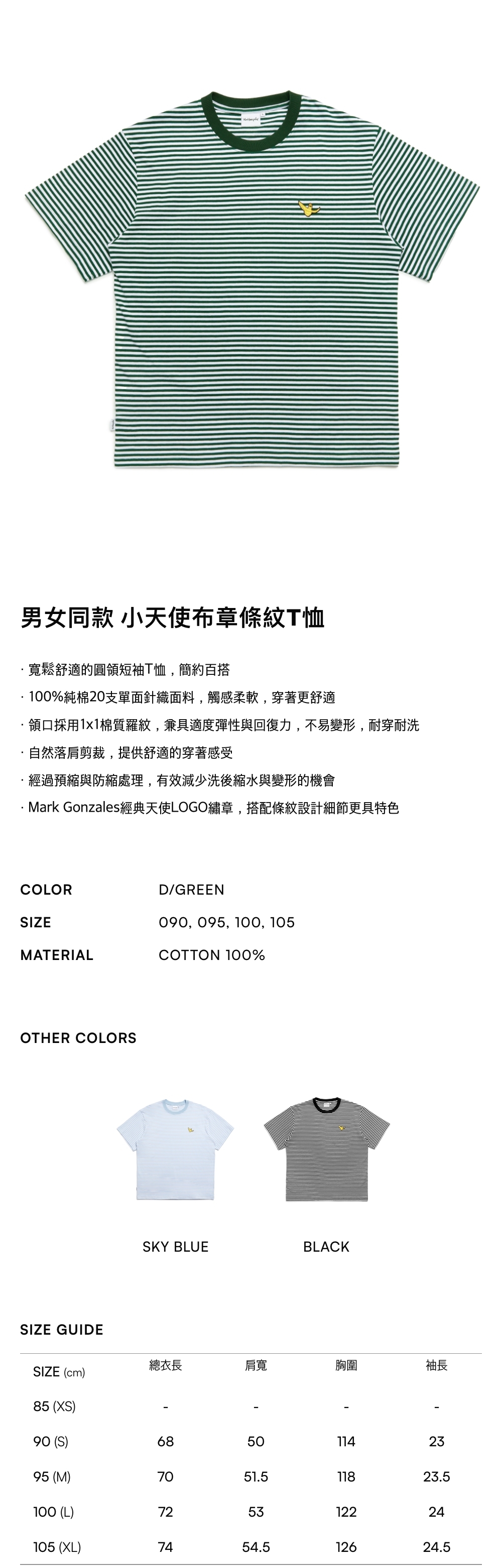 -Mark Gonzales經典天使LOGO繡章,搭配條紋設計細節更具特色