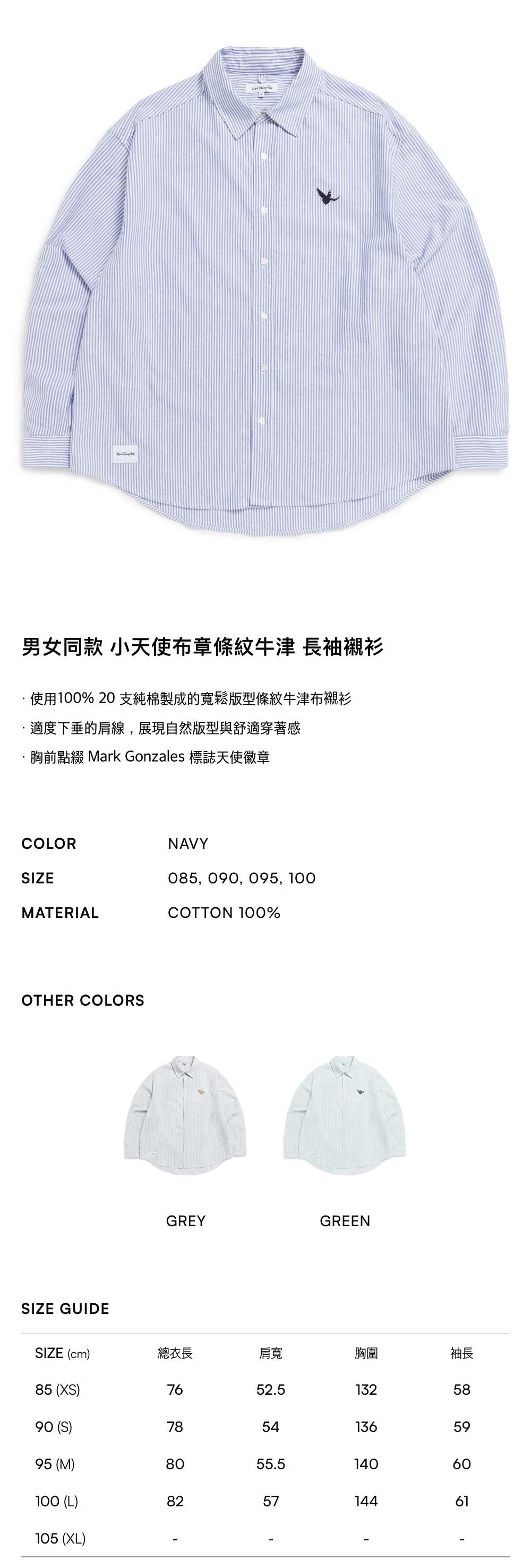 寬鬆版型的 100% 純棉 20支牛津襯衫