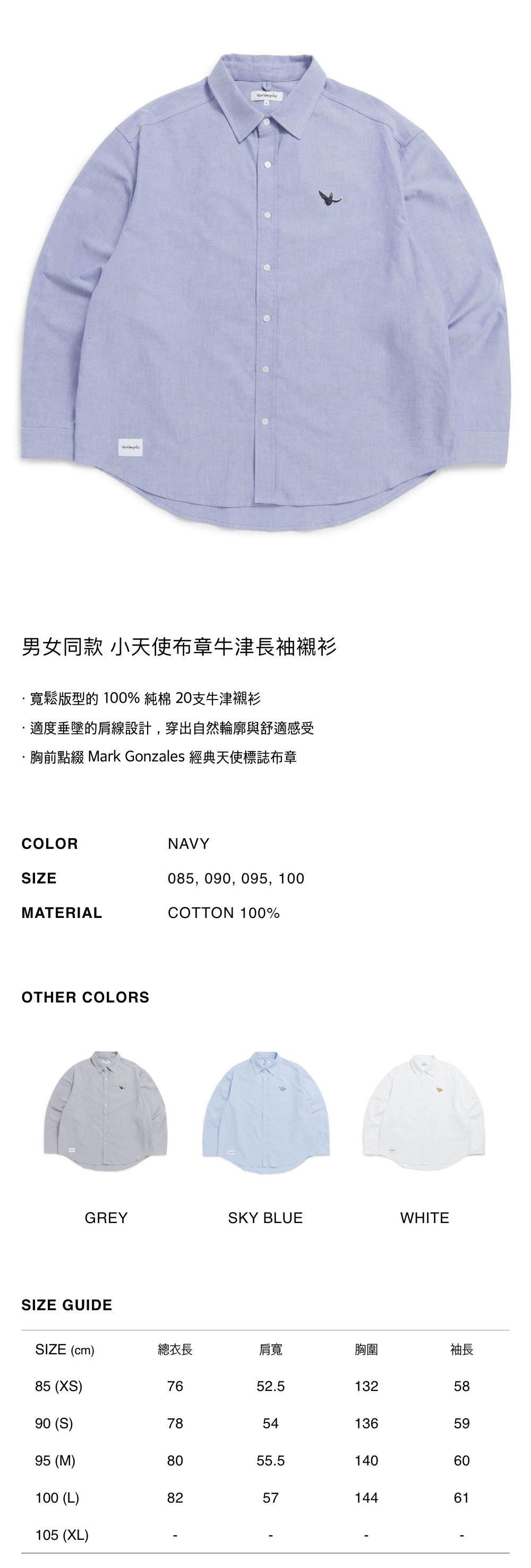 - 寬鬆版型的 100% 純棉 20支牛津襯衫