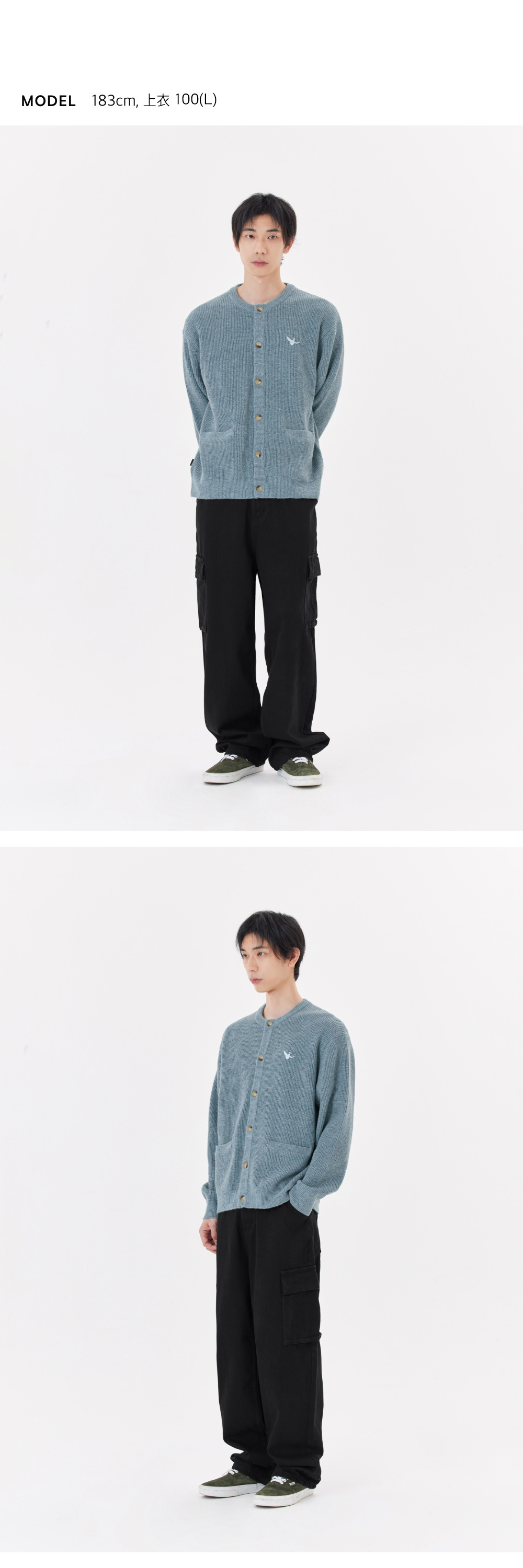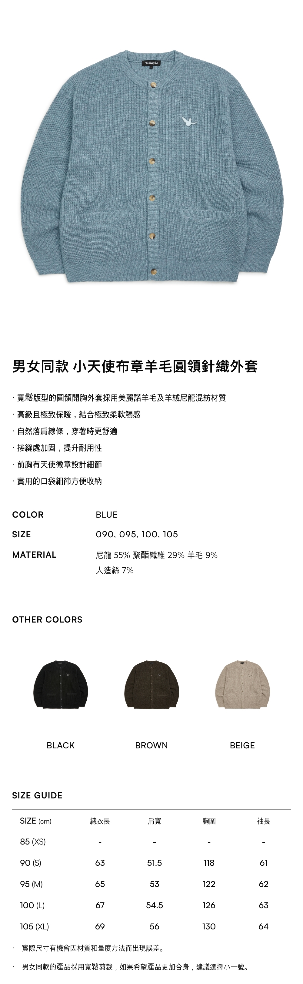 - 寬鬆版型的圓領開胸外套採用美麗諾羊毛及羊絨尼龍混紡材質