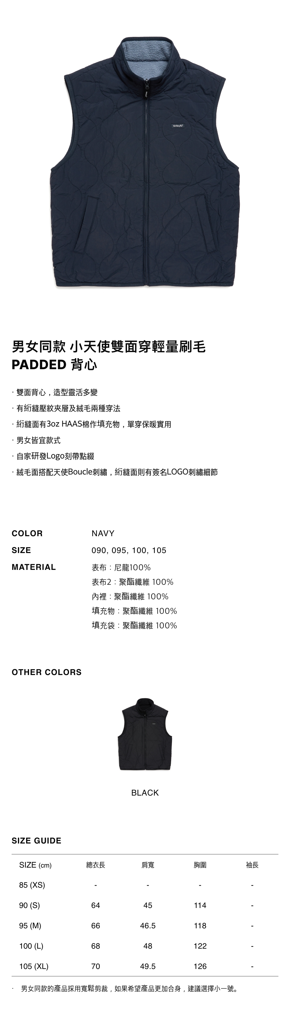 - 雙面背心,造型靈活多變