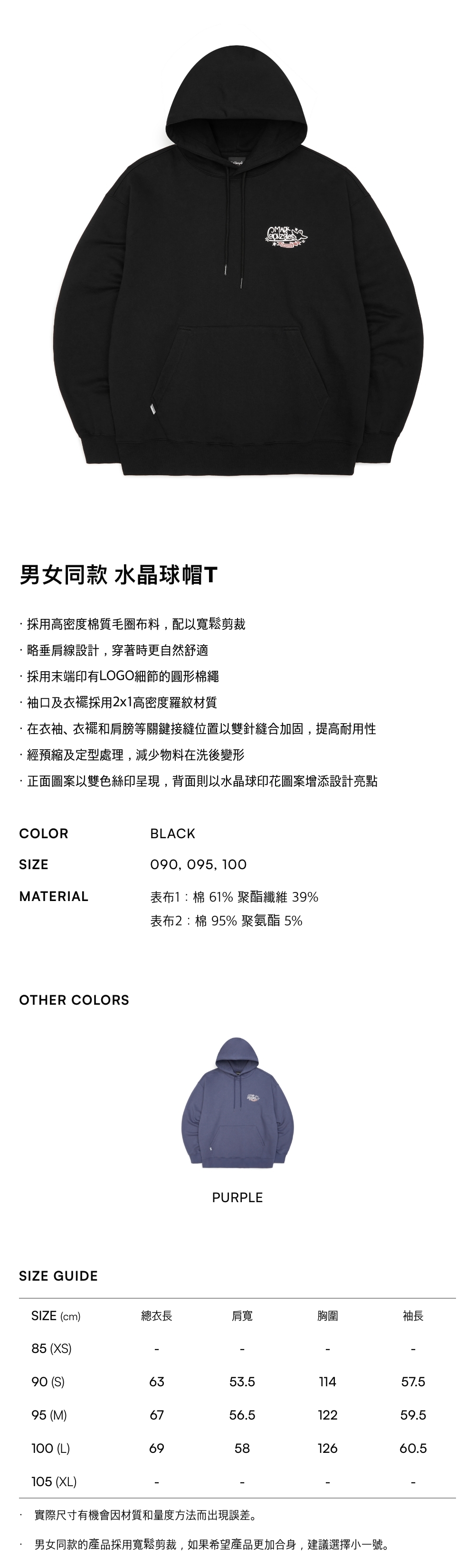 - 正面圖案以雙色絲印呈現,背面則以水晶球印花圖案增添設計亮點