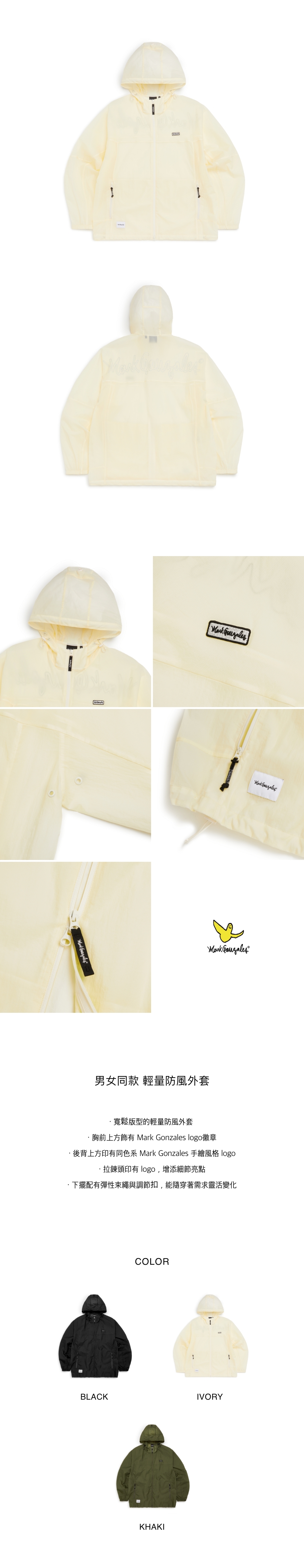 - 寬鬆版型的輕量防風外套